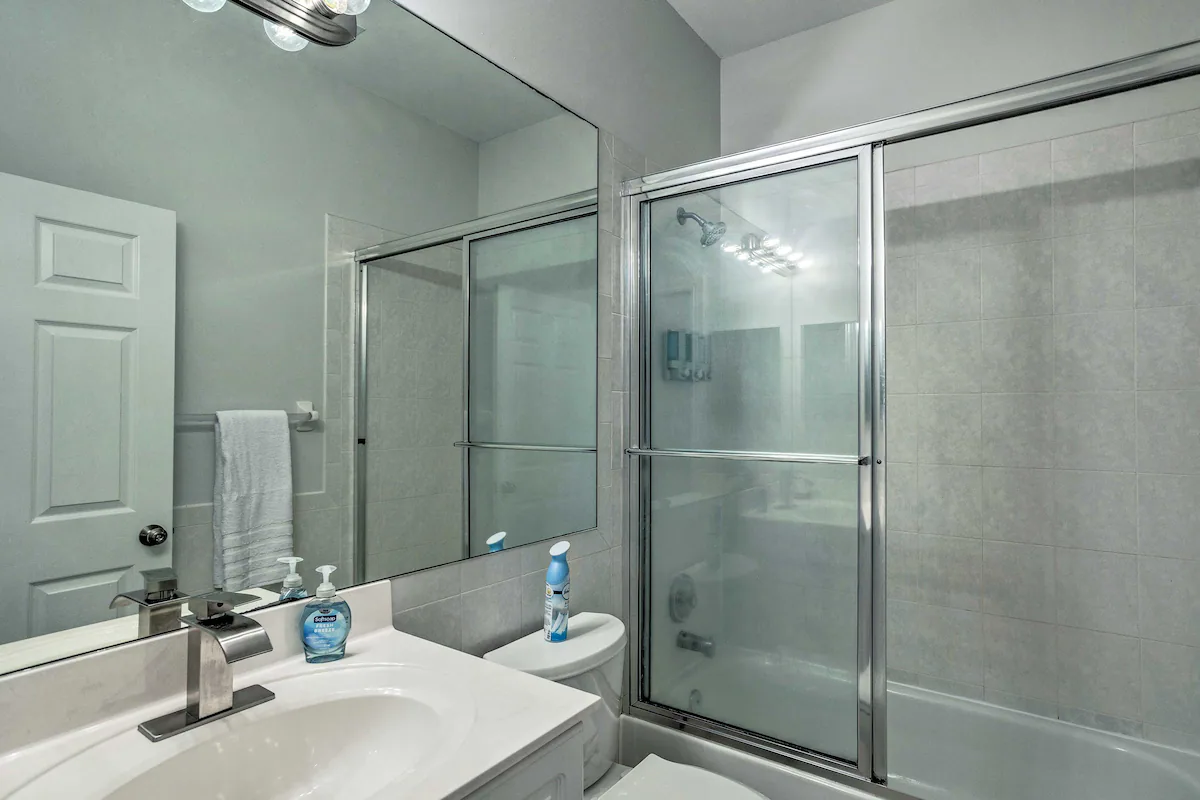 INDOOR LIVING: 2 Smart TVs w/ cable, dining table, shower/tub combo, board games